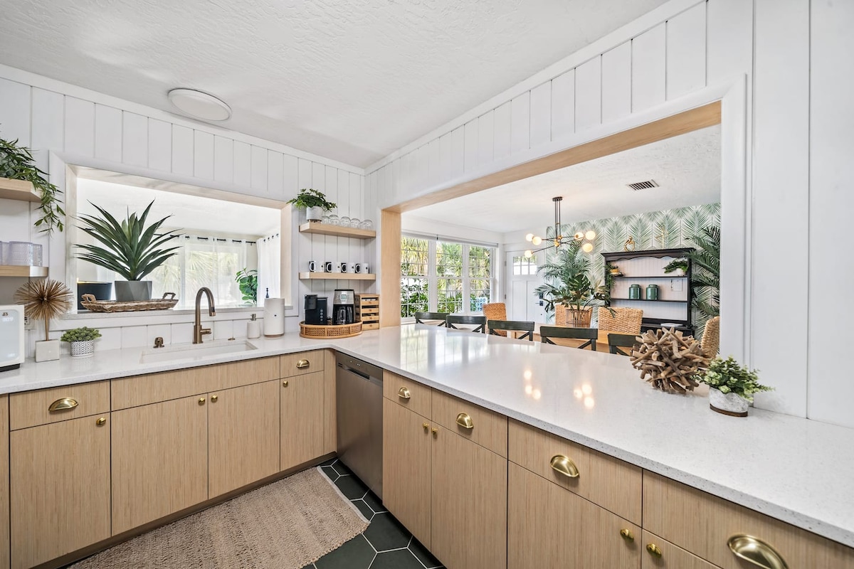 Camina solo 1/4 de milla hasta la playa y relájate en tu propio refugio costero. Recientemente renovado, este luminoso alojamiento tiene capacidad para 8 personas con 3 dormitorios (king, queen, completo + 2 individuales) y 2 baños completos. Disfruta de lujosas sábanas blancas, televisores en todas las habitaciones, una divertida sala de juegos, equipo de playa, comedor al aire libre y una acogedora chimenea. 📍 Centro de Cocoa Beach: 3 millas 🛳 Puerto Cañaveral: 5 millas 🚀 Centro Espacial Kennedy: 22 millas 🎢 Disney: 65 millas ⭐ Perfecto para Pasajeros de crucero Espectadores del lanzamiento de SpaceX Anuncio de viajes de Disney Reuniones familiares Snowbirds