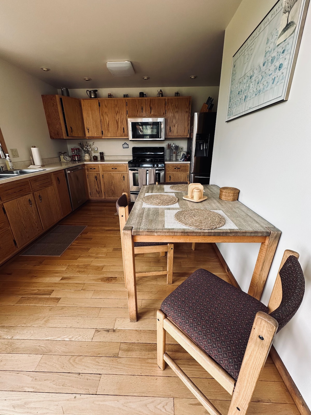 Una vez considerada la casa grossdaudy o «abuelo», este apartamento amueblado ahora ofrece un espacio privado para los huéspedes. El apartamento es accesible para discapacitados y cuenta con zona de aparcamiento pavimentada y entrada privada. Todo lo que necesitas está convenientemente ubicado en una planta con espacio adicional en un loft al que se accede por un conjunto de escaleras de caracol. Un gran porche ofrece espacio para descansar donde puedes ver el trabajo agrícola a tu alrededor. Disfruta de un paseo por la propiedad para conocer a los animales y experimentar la vida en la granja.