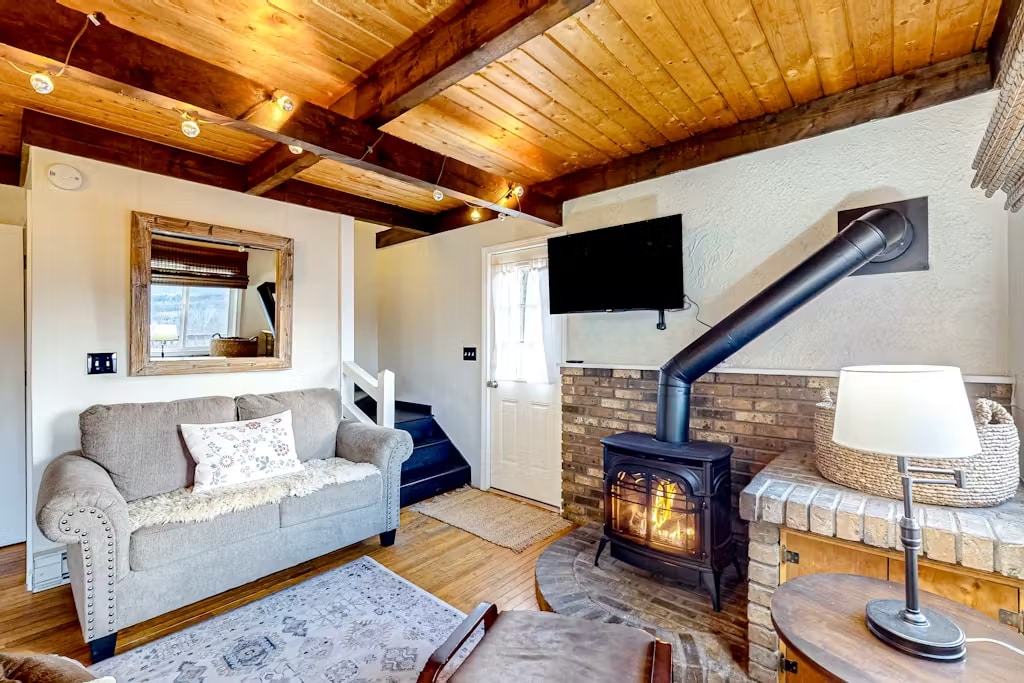 Calificación promedio: 4.82 de 5; 34 evaluaciones¡Acogedora cabaña con vistas a la montaña, chimenea y senderismo!
