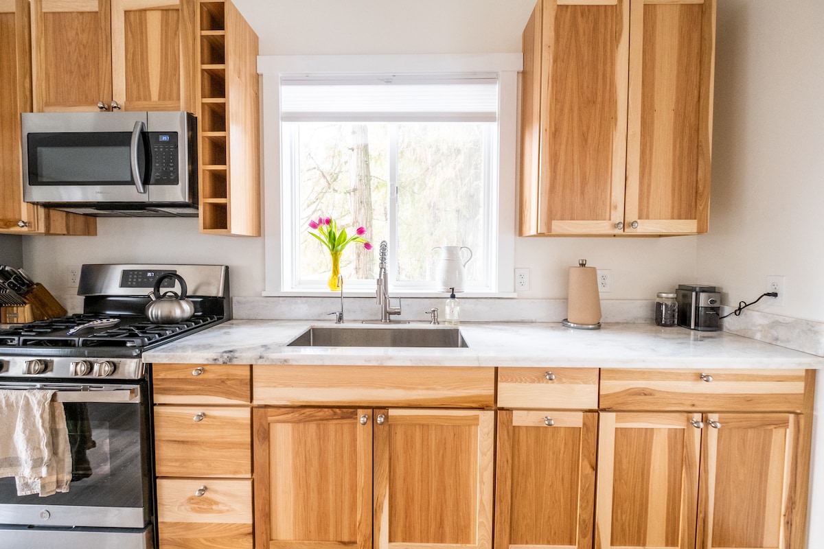Cow Creek Cabin se encuentra en un prado tranquilo con unas vistas preciosas de Big Mountain. Está a solo dos millas del centro de Whitefish y a 15 minutos de la estación de esquí. Este tranquilo entorno de Montana es una base ideal para aventuras en Whitefish. La cabaña cuenta con amplias ventanas que traen la vista de la montaña al interior. Una estufa de leña te espera a tu regreso de un día en las pistas o senderos. La cocina está equipada con todo lo necesario para cocinar tus propias comidas. El televisor OLED está conectado a internet rápido Starlink.