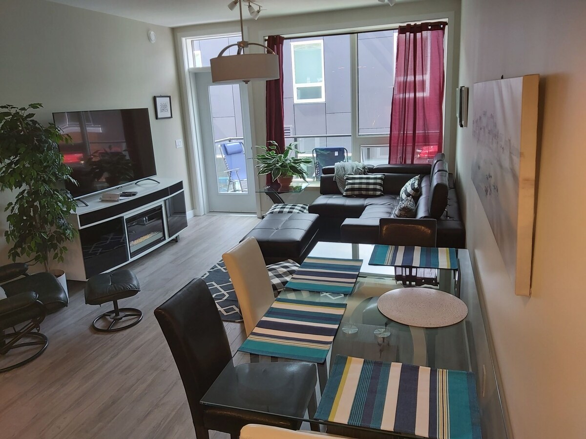 Moderno 1 dormitorio, 1 baño en el corazón del centro de Whitehorse. Estacionamiento gratuito a solo unos pasos de la entrada del edificio. Esta unidad se encuentra a pocos pasos de todo lo que el centro de Whitehorse tiene para ofrecer... Yukon River, restaurantes, cafeterías, centros de conferencias, paradas de autobús, tiendas locales y mucho más. Ten en cuenta a los huéspedes anteriores que esto hasta que ya no tenga una segunda cama en la habitación libre, ahora es una unidad de un dormitorio/cama con una oficina. Solo es adecuado para una pareja o una persona soltera.