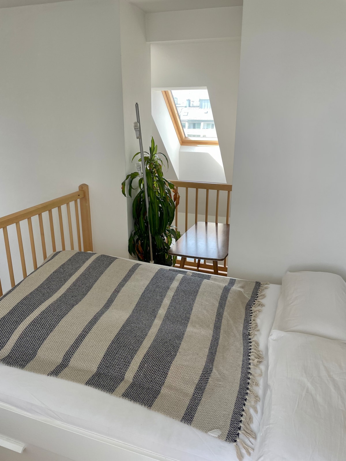 Los dos apartamentos tipo estudio, cada uno con unos 30 m2, se encuentran cerca del centro en el segundo distrito emergente, con vistas a los tejados de Viena. La casa tiene un ascensor que te lleva cómodamente al último piso. Desde allí, tu apartamento está a solo unos pasos, lo tendrás para ti. Es muy luminoso y soleado en el apartamento y tienes todo lo necesario para una estancia agradable. Equipamiento: - salón-dormitorio - Baño privado con ducha y aseo. - Cocina pequeña totalmente equipada. - W-Lan Para disfrutar de tus vacaciones, puedes ir de compras a la vuelta de la esquina, ir al cercano mercado Carmelite o utilizar el metro (U2) o el tranvía (2) para ir al distrito de los museos o a Schwedenplatz. A pie se tarda unos 10 minutos en llegar al centro de la ciudad. Muchos lugareños y reuniones diferentes en la zona proporcionan diversión y te dan la oportunidad de desayunar, almorzar barato y cenar deliciosos platos vieneses/internacionales. Se puede ir caminando al Augarten o al Prater Verde para relajarse. Para llegar al Centro de Exposiciones de Viena hay que hacer dos paradas en la línea U2, por lo tanto, es ideal para visitantes de la feria o expositores. El precio incluye ropa de cama, toallas, mantelería, así como electricidad y gas. Los gastos de limpieza son de 30,00 €. Tarifa de limpieza para estancias de un mes o más 50,00 €. Hay lavadora disponible. Los apartamentos tipo estudio/estudios también son de alquiler mensual. Reserva mínima de tres noches.