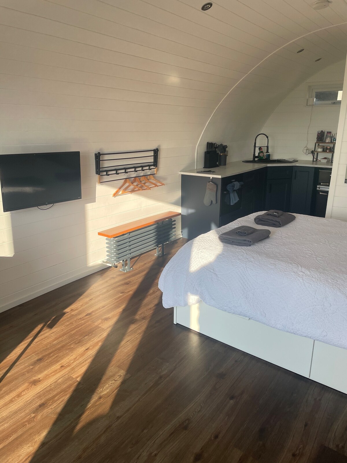 Quédate en este alojamiento único y disfruta de los sonidos de la naturaleza. La base perfecta para caminar o ir en bicicleta por la zona o visitar las ciudades locales y lugares de interés increíbles o simplemente para detenerse, relajarse y refrescarse. Este es un alojamiento apto para perros, sin embargo, cualquier otra mascota, es decir, gato/burro/pitón gigante, me temo que tiene que dejarse en casa y te pido que mantengas al perro con correa cuando estés cerca del aparcamiento y los pasillos.