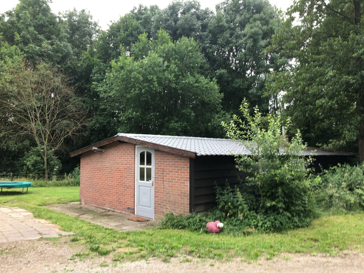 La cabaña tiene un ambiente único, creado con materiales de antaño. Está en la parte trasera de nuestro patio, con vistas a los prados, al bosque y al dique. En verano, las vacas pastan desde la granja adyacente en el prado, los patos y las carnes nadan en la zanja. ¡Ves regularmente una cigüeña o un ciervo! Con el sonido del cuco, el kievit o el búho, ¡experimentarás la naturaleza muy cerca! Desde el invernadero o desde el gran jardín, se puede ver el amanecer por la mañana.