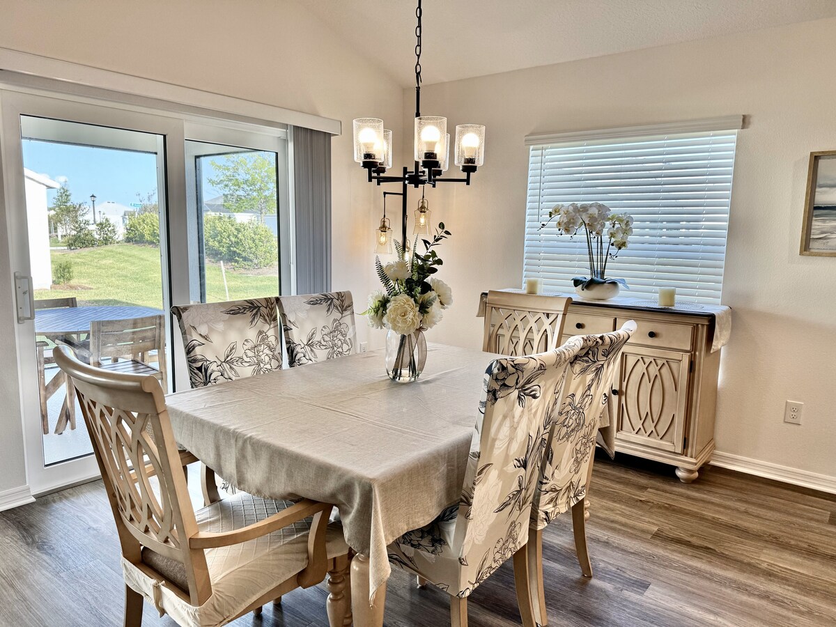 Want a newer vacation home close to Sawgrass Grove where free nightly entertainment is available, several pools, recreation centers, biking paths and the future town square of Eastport? Look no further. Check out this fully furnished home! The outdoor living is relaxing and tropical as we have an outside patio behind the palms. It will make you feel like the only person on the street! We are also within 12 minute drive to the Villages High school/ Middleton and 18 minutes to Leesburg