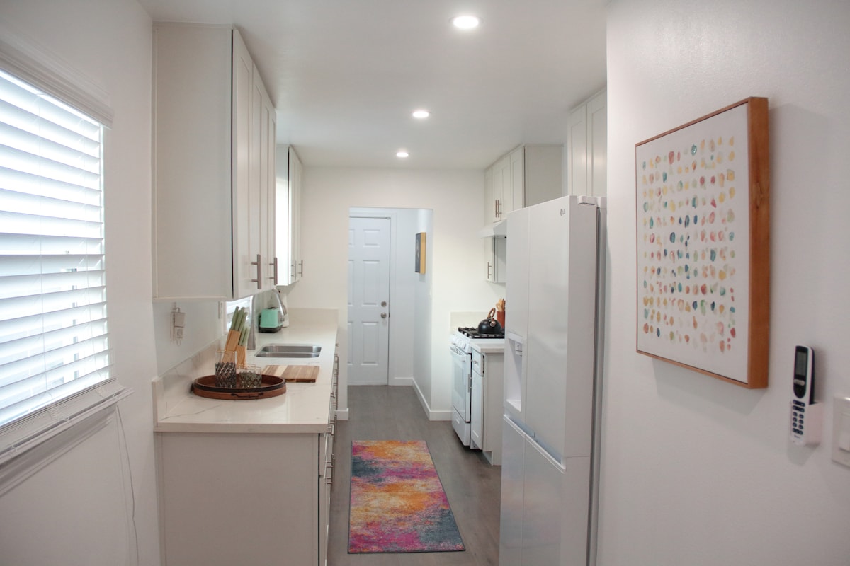 Keep it simple at this cozy - centrally-located place. Contemporary 1 Bedroom House with outside seating to enjoy the evening breeze. Laundry Room and Refrigerator. Full functional Kitchen with Stove,Microwave and Coffee Maker . Convertible couch with USB charger. Bathroom -Shower& Bathtub . Bedroom with queen size Bed and queen size Air mattress. 42 “ TV Wi-Fi -Internet . Separate Driveway. Close to SoFi Stadium, Kia-Form , Beaches, LAX, Staple Center. Self check -in digital door lock .