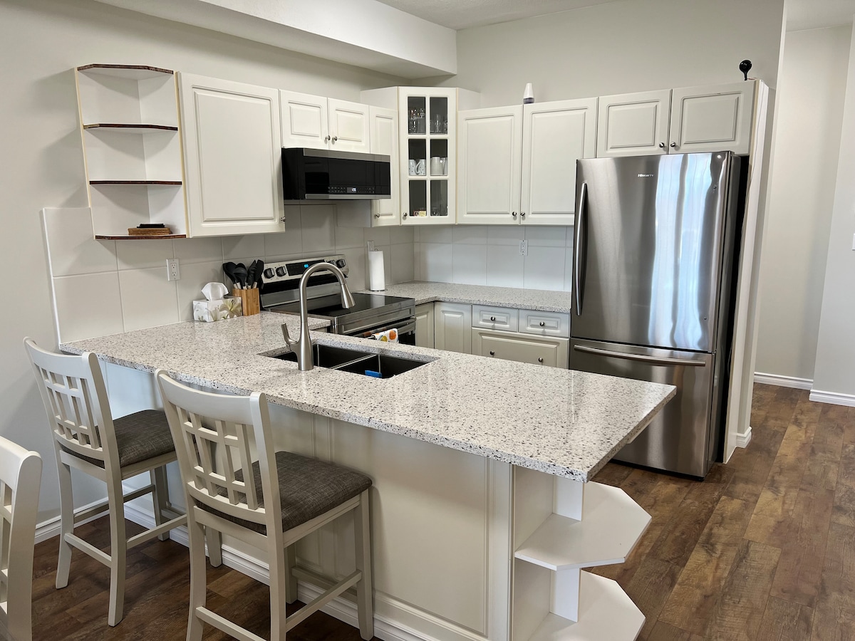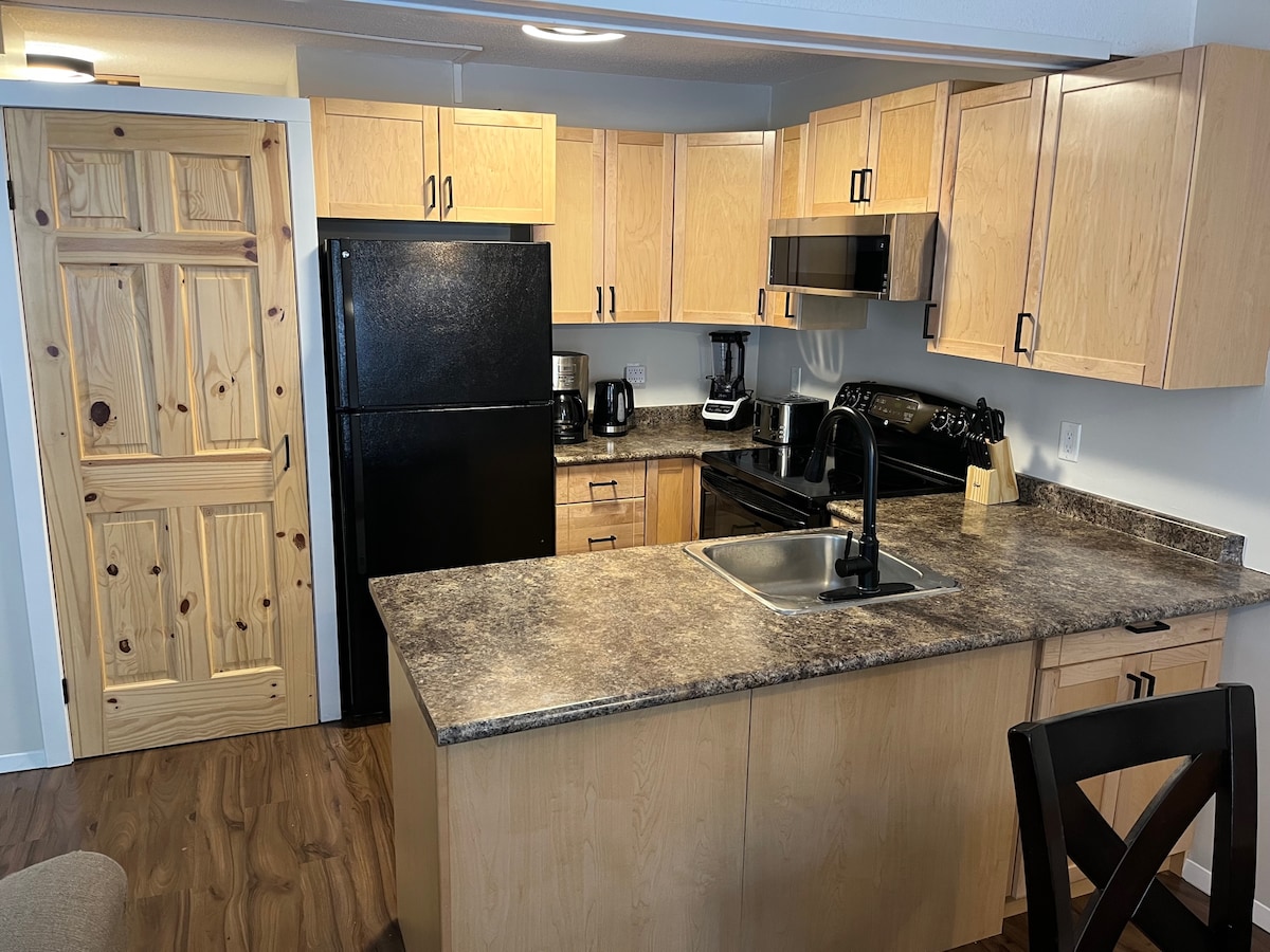 ¡Este apartamento tiene todo lo necesario para pasar un buen rato en Columbia Valley! Amplia cocina y sala de estar, 2 baños completos, patio con barbacoa, 2 dormitorios con cómodas camas tamaño queen y otro lugar en el sofá para una quinta persona. Disfrutarás de las modernas comodidades en nuestro espacio limpio y acogedor. A solo 1 minuto en coche del pueblo de Radium, a 5 minutos de las famosas piscinas de Radium Hot Springs y a 15 minutos de Invermere. Panorama Mountain Village está a 30 minutos en coche. ¡A solo 1,5 horas de Banff y del lago Louise!