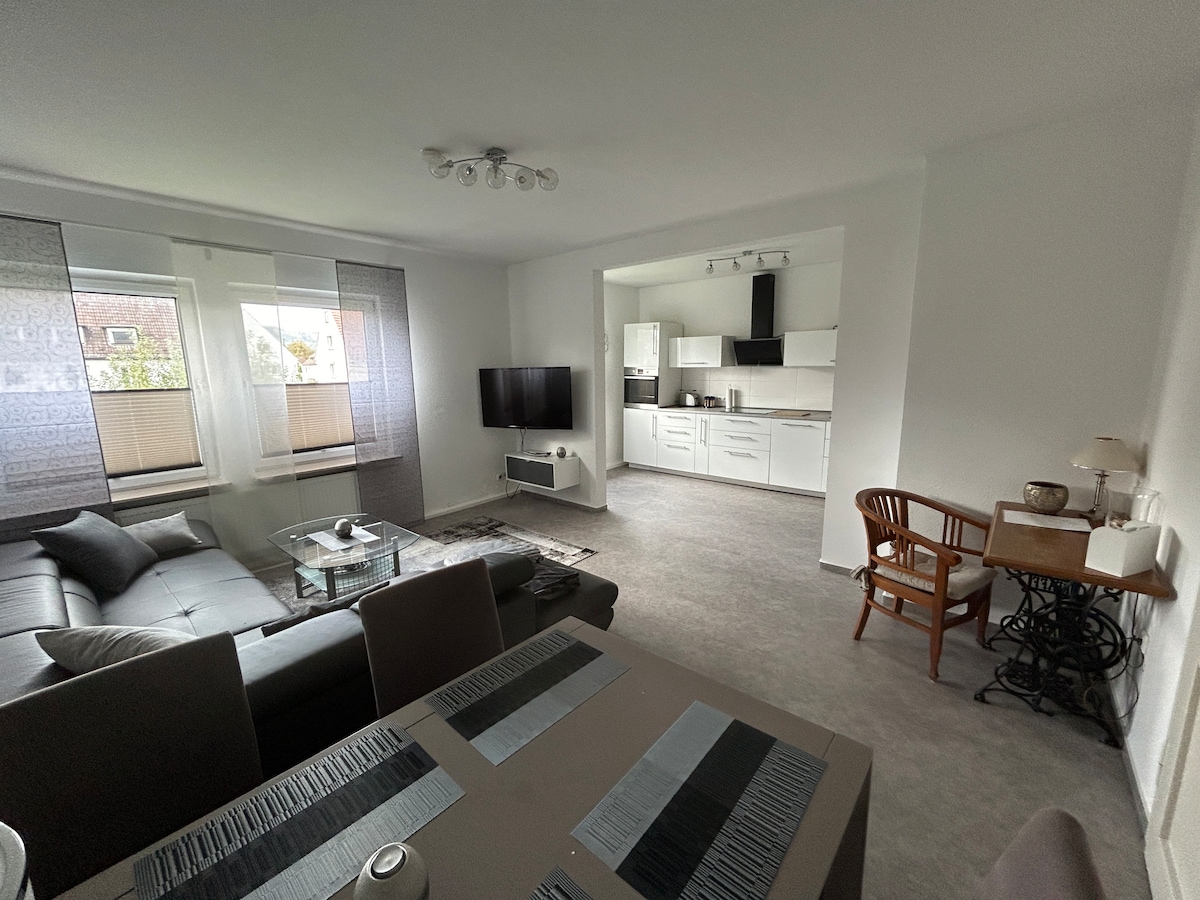 Elegante patio histórico de entramado de madera, combinado con un moderno diseño interior y la última tecnología. Los excursionistas son bienvenidos. El paisaje invita a practicar senderismo (Kaufunger Wald, Naturpark Münden), ciclismo, pero también a visitar Kassel o Göttingen (por el Parque de montaña de Kassel, declarado Patrimonio de la Humanidad). Ambas ciudades son accesibles en coche en un máximo de 30 minutos. Los ciclistas también son bienvenidos. Hay mucho espacio para caballos o motocicletas/bicicletas.