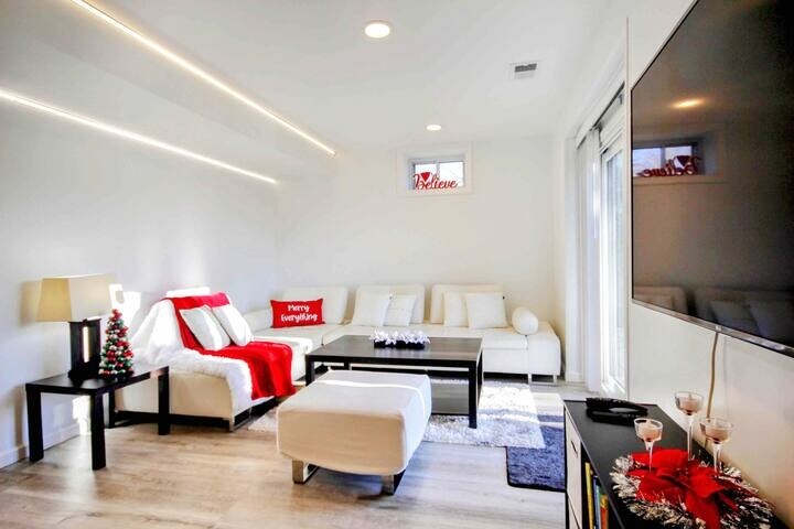 Amplio apartamento de 1 dormitorio y 1 baño en el sótano con entrada privada
