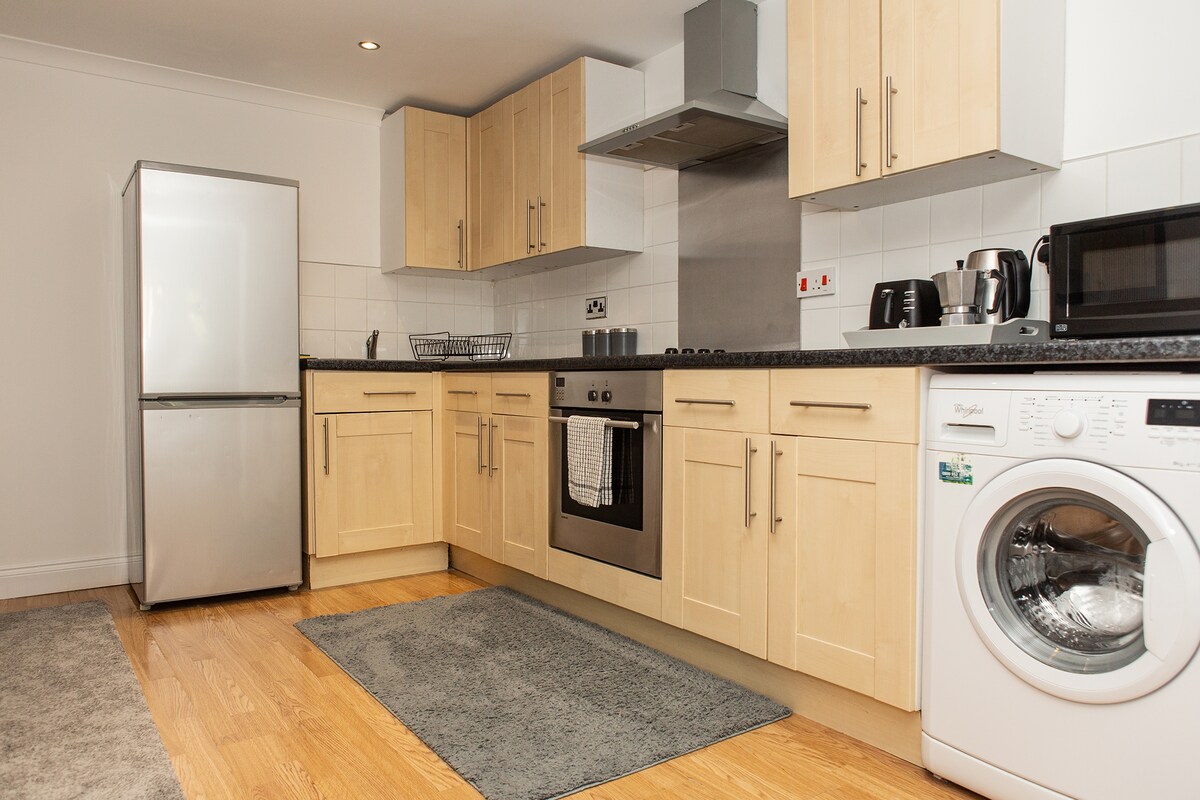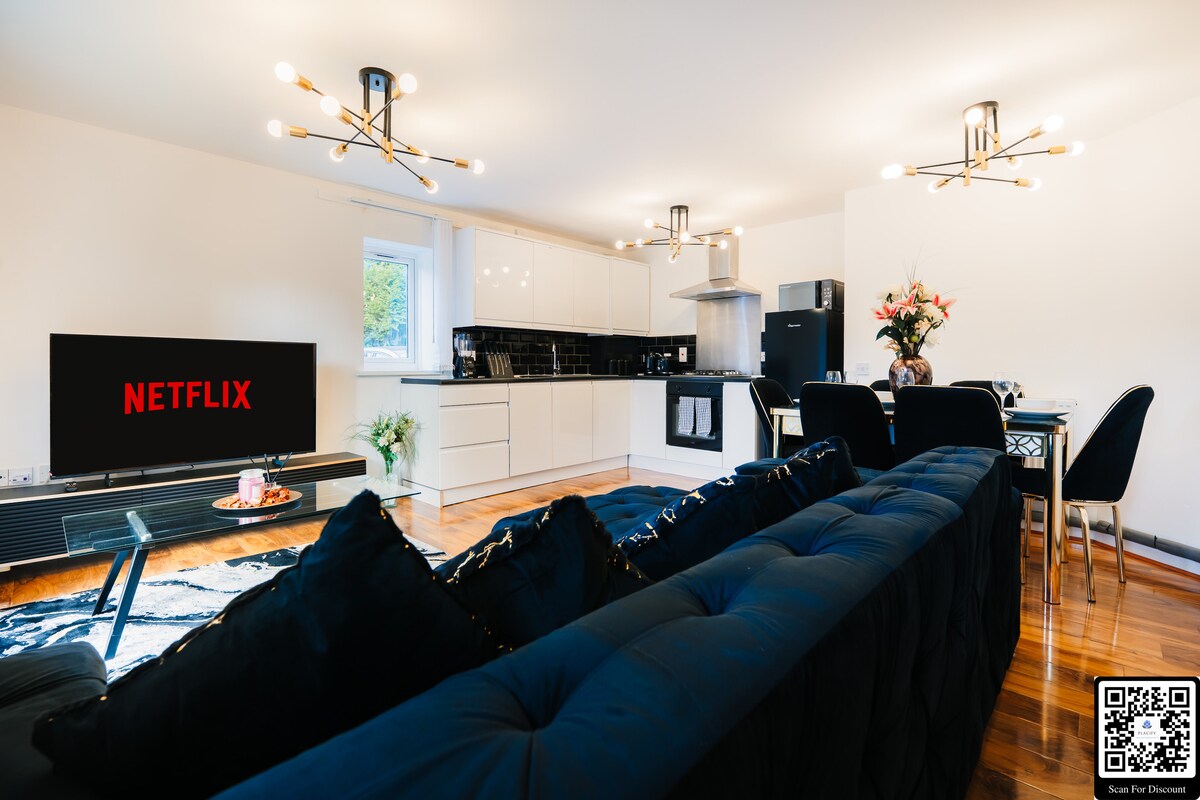 Experimenta la mezcla perfecta de relajación y aventura en este acogedor apartamento de dos dormitorios de nueva construcción, a solo 20 minutos del O2 . Tiene acceso al ascensor, balcón privado, puertos de enchufe de carga USB. Perfecto para parejas, amigos y familias, este espacio lo hace ideal para escapadas, eventos o simplemente para relajarse. La cama Super King es una cama con cremallera, por lo que se puede convertir en dos camas individuales bajo petición. Hay estacionamiento gratuito disponible por orden de llegada, en una carretera lateral a 1 minuto a pie.
