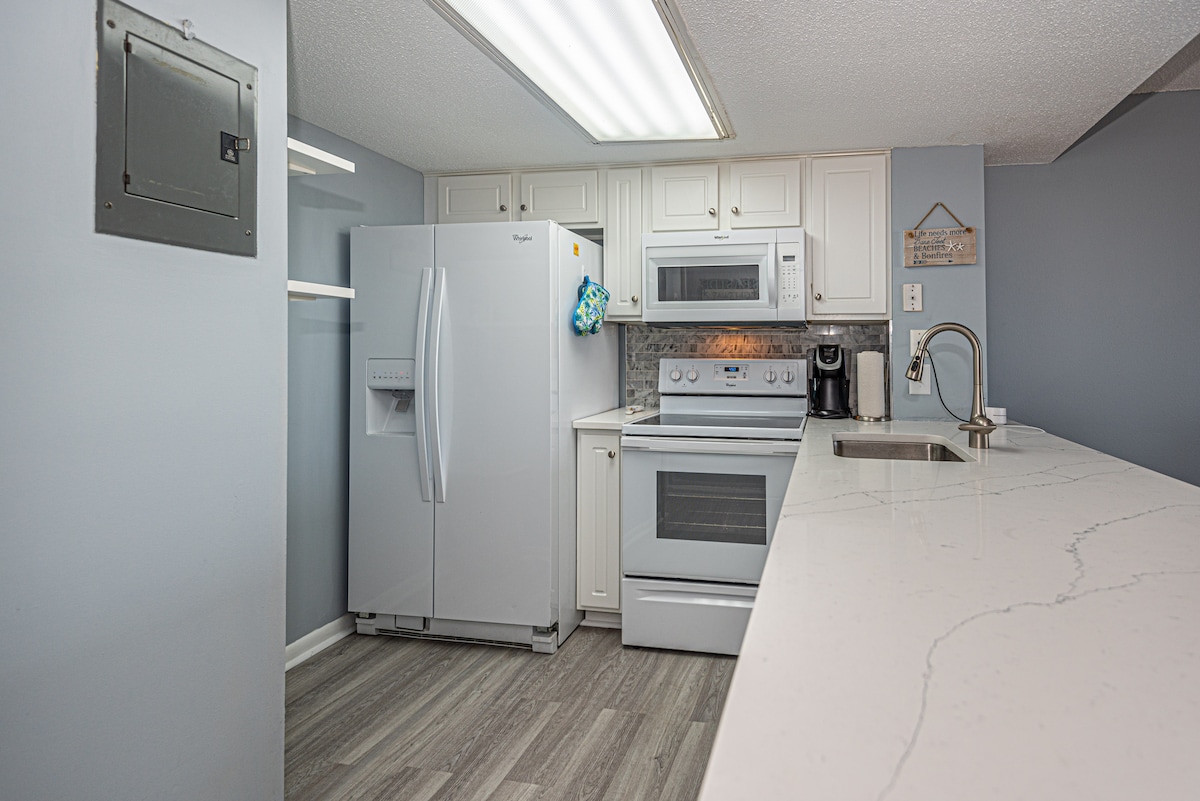 Elige tu propia aventura en este espacio actualizado junto a la bahía. ¡A poca distancia de varios restaurantes, minigolf, tiendas y, por supuesto, la playa! Esto viene con 2 lugares de estacionamiento gratuitos, acceso a la piscina/jacuzzi (para el edificio) gimnasio y una vista a la bahía desde el balcón. ¡Tenemos un servicio de limpieza entre huéspedes para garantizar que las cosas estén frescas y ordenadas! Te proporcionamos algunos artículos del kit de bienvenida que se enumeran a continuación para que no tengas que traer mucho, así como electrodomésticos para todas tus necesidades. Superanfitrión 6 veces consecutivas.
