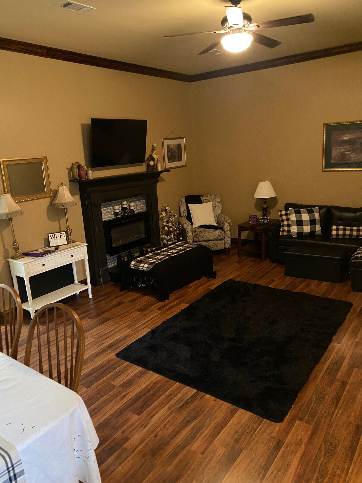 Echa un vistazo a este alojamiento único y relajante. Wiley Farms es una granja de caballos y ganado en funcionamiento. Durante tu estancia, ¡podrás vivir la vida de la granja sin tener que hacer ninguno de los trabajos! La granja de 109 acres está a la vista desde la puerta trasera. Muchos días puedes ver a algunos vaqueros practicando eventos de rodeo en la arena. Pronto habrá un sendero para caminar. Hay muchas posibilidades de que veas ciervos, conejos, mapaches, patos volando para posarse, junto con los caballos y el ganado. ¡Todo esto y a solo 3 millas de la ciudad!