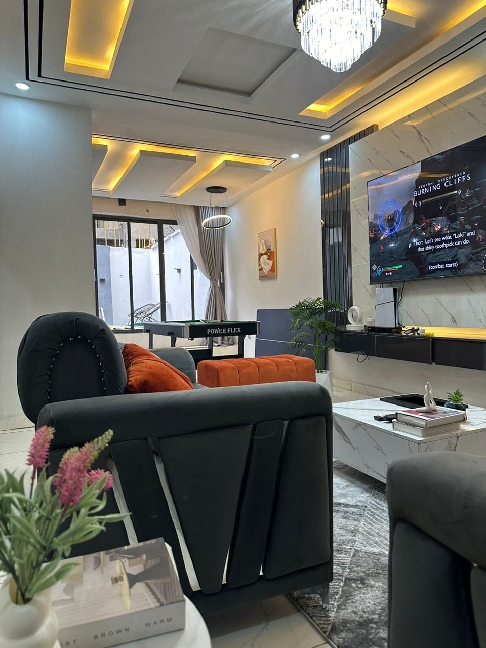 Morak Homes es un oasis en una ciudad concurrida, nuestra casa moderna, inteligente, hermosa, luminosa, de 4 dormitorios es perfecta para familias discretas, parejas o amigos que buscan una estancia tranquila y entretenida. El interior diseñado con buen gusto proporciona un entorno sereno y cómodo para ti mientras visitas Abuja. La propiedad tiene una piscina, sala de juegos, billar, fútbol de mesa, PS5, Netflx, wifi rápido, DsTv. Todos los televisores son Smart.