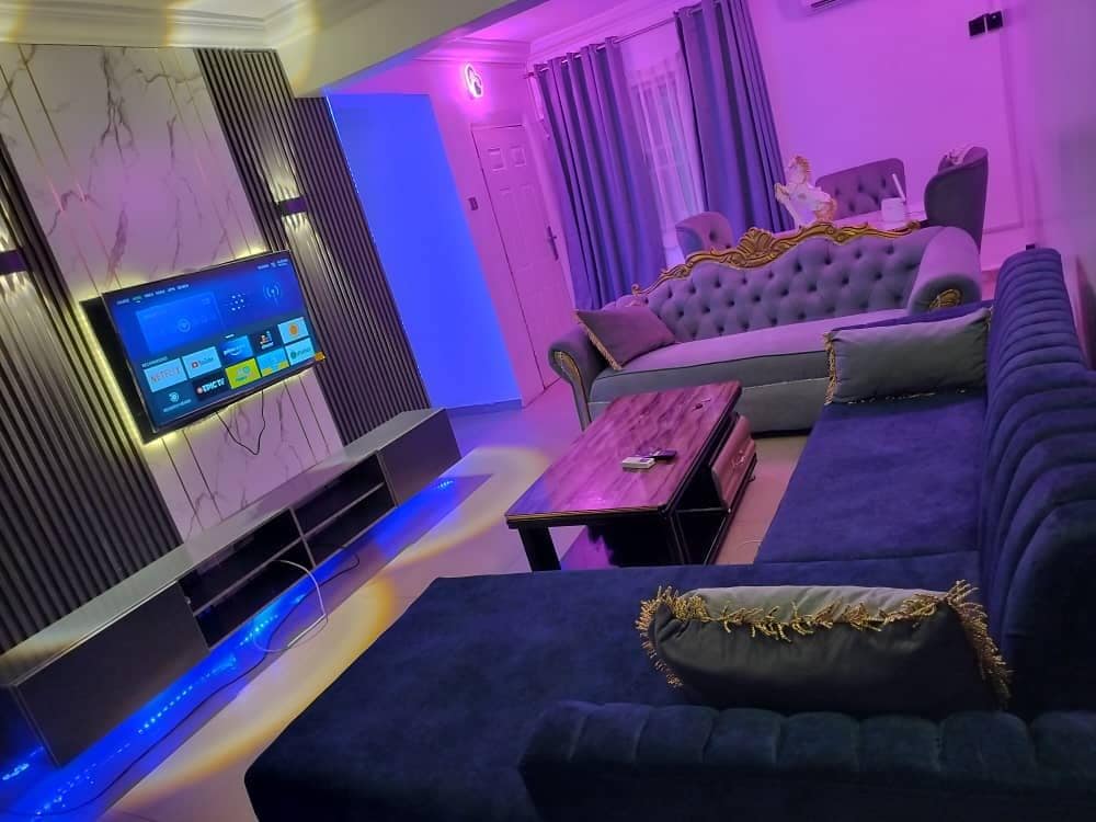 Disfruta de una experiencia elegante en este apartamento céntrico. Un apartamento de 2 dormitorios con características como PlayStation 5 y últimos juegos bajo petición, reloj antiguo del padrino, TV de 65 pulgadas. También ofrecemos seguridad estricta, vigilancia las 24 horas, los 7 días de la semana, energía las 24 horas, los 7 días de la semana con generador de respaldo, WIFI, estacionamiento gratuito, proporcionando a los residentes una sensación de seguridad y tranquilidad. Tenemos los mejores centros comerciales y clubes cercanos como 4U Supermarket, H-Medix, supermercado Pay Greens, etc.