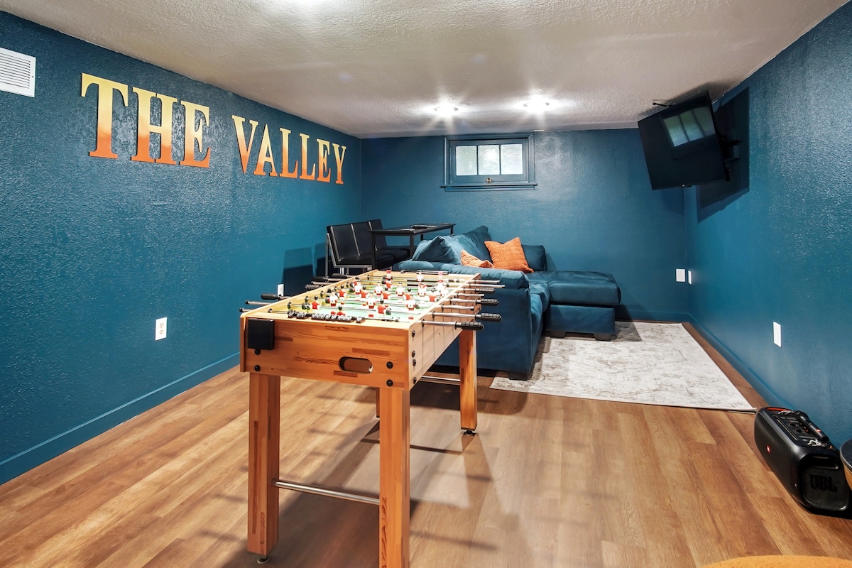 ¡Bienvenido a tu hogar lejos de casa! Esta casa grande pero acogedora ha sido cuidadosamente renovada con toques que te encantarán. 4 dormitorios privados, 3 camas tamaño king y 6 camas individuales, 2 salas de estar, una sala de juegos, televisores grandes por todas partes y un cobertizo adicional amueblado para jugar y divertirse. El oasis del patio trasero completará tu pintoresca estancia. Con una ubicación céntrica, a solo diez manzanas del hospital y a dos manzanas de una piscina pública de verano y de las colinas de trineo de invierno. ¡Familiares, amigos y amigos peludos son bienvenidos!
