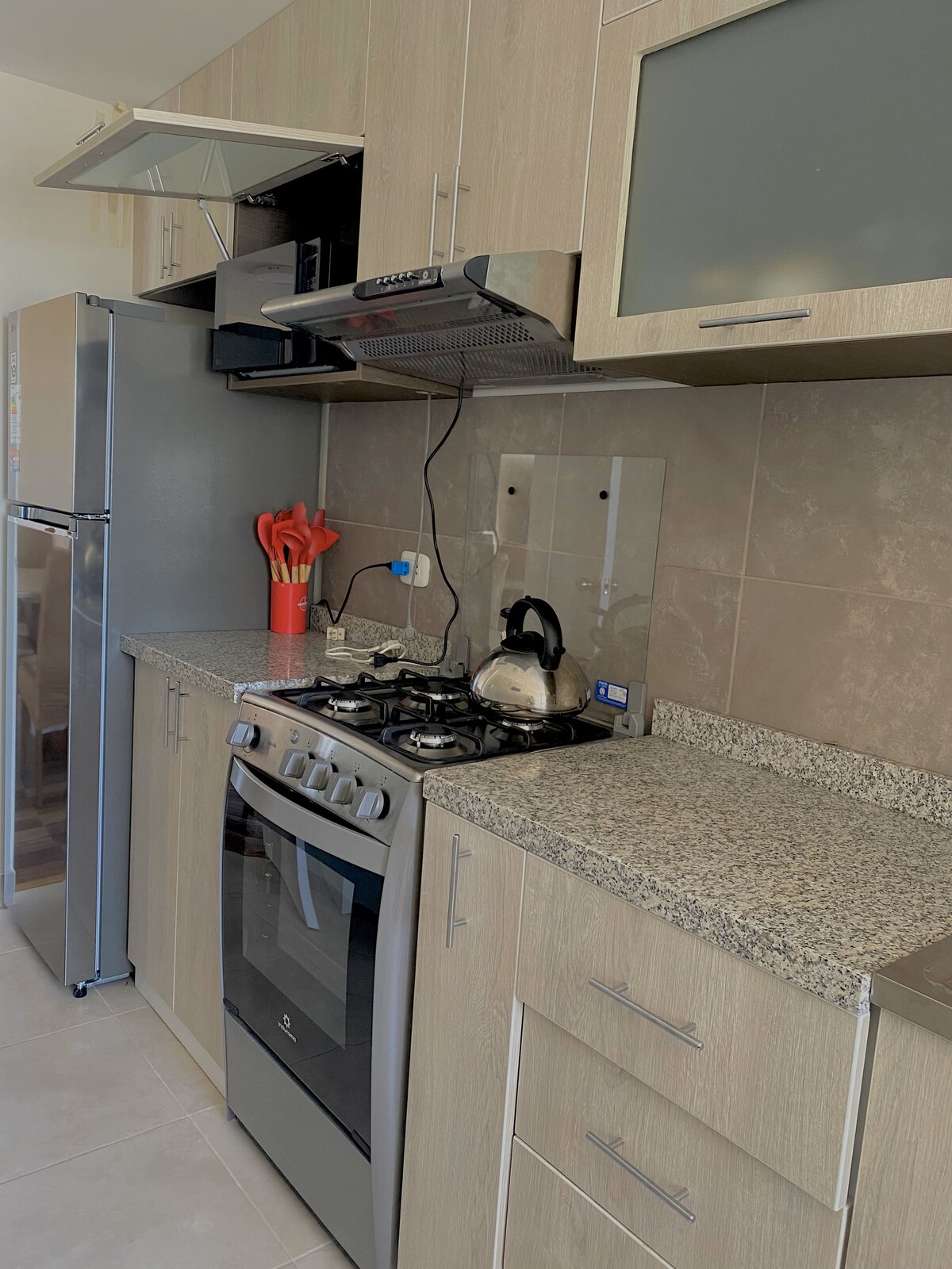 ✨ Moderno y acogedor departamento ideal para tu estadía. 🏠Departamento totalmente amoblado ubicado en urbanización privada de Cayma, con acabados de lujo, baño completo, cama de dos plazas, cómodo sofá cama, cochera en semisótano y hermoso balcón. Cuenta con todas las comodidades: Netflix, cable, agua caliente y wifi con excelente conexión. A 5 min a pie de la plaza de Cayma, menos 5 min en auto de la Av. Ejército y 12 min en auto aprox del centro histórico y aeropuerto ✈️