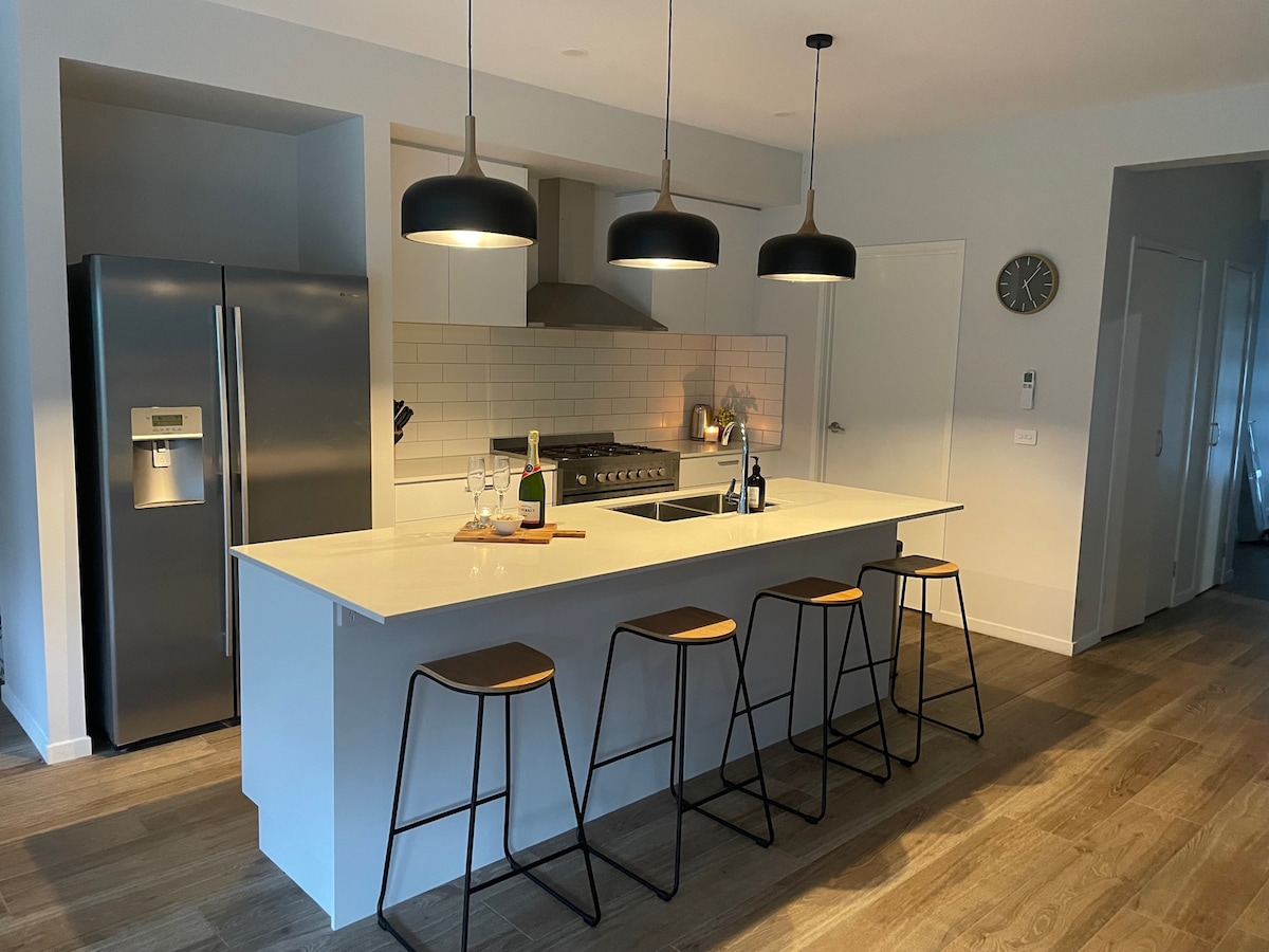 Agrestic Yarrawonga es una casa de lujo única en su clase, diseñada para grupos grandes y varias familias. Con dos alas idénticas, puede alojar cómodamente a más de 16 huéspedes con ropa de cama de calidad (sin literas). Disfrute de WiFi rápido, Netflix, varias zonas de estar, un televisor de 85”, una cocina gourmet y entretenimiento en el interior y al aire libre con una parrilla de gas. Ubicada en un terreno de un acre con estacionamiento seguro, cochera, canasta de baloncesto, césped y una piscina a la sombra, es ideal para estadías relajadas en grupo.