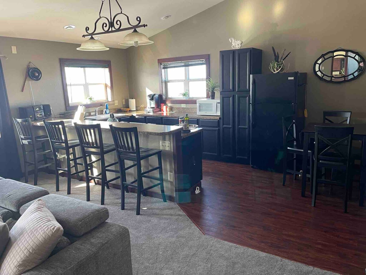 ¿Por qué reservar un hotel cuando puedes tener mucho más? Estudio nuevo, limpio y grande de 550 pies cuadrados, el doble del tamaño de una habitación de hotel promedio. Excelente ubicación en la ciudad, a pocos pasos de tiendas y restaurantes. ¡A 2 minutos en coche de Park Gate! Vistas al arco de Roosevelt y a la entrada de Yellowstone. Bar cafetería, mininevera, microondas, cama y ropa de cama prémium, wifi, TV de 52 pulgadas, Dish Network, Netflix y agua embotellada. Terraza y parrilla para barbacoa. Aparcamiento en la puerta principal con teclado. Registro de entrada autónomo. Lee las evaluaciones de nuestros huéspedes.