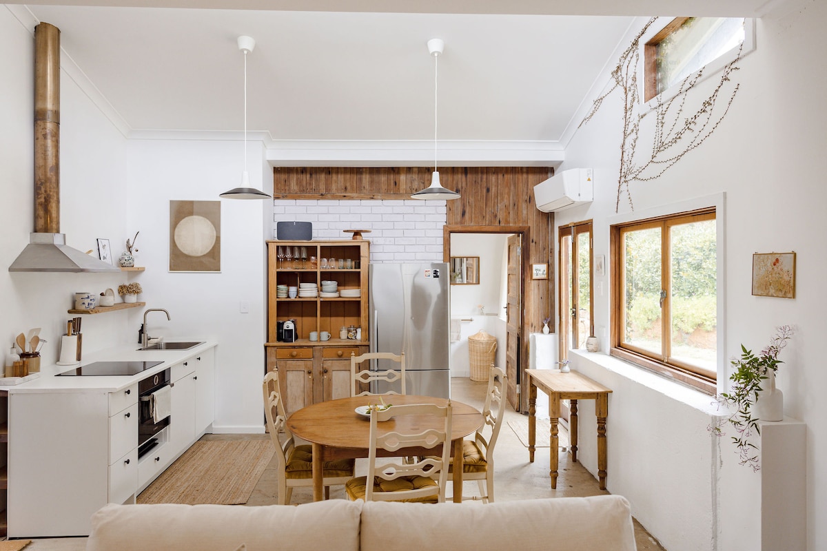 Hermosos paisajes, a siete minutos en coche de la ciudad de Margaret River y de las playas de Gracetown y Prevelly, con todos los servicios que necesitas y la experiencia de una granja. Rodeada de tierras de cultivo, nuestra casa rural te proporcionará la belleza y la serenidad de la naturaleza. Los canguros y los animales de granja pastarán cerca de tu casa y podrás caminar hasta nuestro negocio Scoops Farm para tomar un helado y entrar gratis a nuestra granja de animales durante tu estancia. Hay bodegas y cervecerías cerca, cobertura telefónica y Netflix.
