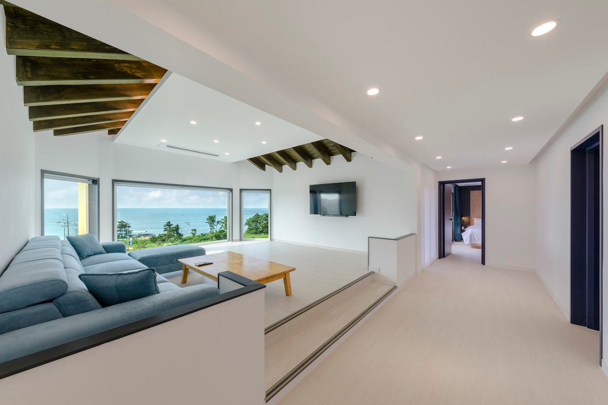 Hola. Queremos crear un espacio que te haga olvidar la congestión del centro de la ciudad con el sonido de las olas del mar. Nuestro espacio, que se encuentra a 20 minutos del aeropuerto, ofrece vistas al mar azul de Jeju desde todas las habitaciones. Composición del espacio Espacio de 12 pyeong de 3 pisos de altura (con ascensor) 1. Espacio de dormitorio : La habitación es un espacio tipo estudio con cocina. Cama, TV de pared, mesa de té y mesa para dos, perchero, soporte, fregadero, aire acondicionado, frigorífico pequeño (congelador separado), inducción 2. Cocina : Platos y utensilios de cocina para 2 personas 3. Baño : Ducha de girasol, toallas, champú, acondicionador, gel de baño, jabón, papel higiénico (por favor, tenga en cuenta que no es posible proporcionar cepillos de dientes debido a la Ley de Control de Higiene). 4. Terraza 5. Zona de barbacoa Ocean barbacoa conectada al mar: 20 000 wones (proporcionamos carbón y parrilla). Al lado del vestíbulo, hay un área de barbacoa separada en caso de lluvia. 6. Estacionamiento: Estacionamiento eléctrico disponible. 7. Solicite por separado la lavandería y la secadora en la entrada del primer piso. Gracias.