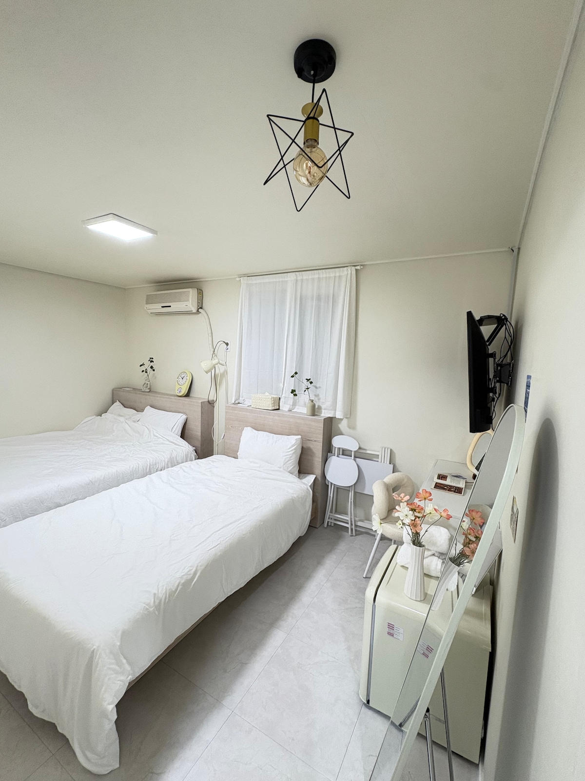 지브리 감성을 담은 아기자기한 감성숙소 입니다 북유럽풍과 일본 모던료칸의 인테리어를 믹스매치해 아늑한 침실을 자랑합니다 1층 공용카페는 무료 이용 가능하며 *무료 조식 서비스 (8가지반찬, 따뜻한 밥, 국) 월, 토 휴무 *OTT지원 (넷플릭스, 애플TV, 왓챠, 디즈니, 티빙 등) It's a cute and sentimental dorm with Ghibli's emotions Mix and match the interior of the Nordic style and the Japanese modern ryokan It boasts a cozy bedroom You can use the public cafe on the 1st floor for free Free breakfast service is available (toast, cereal, milk, ramen)