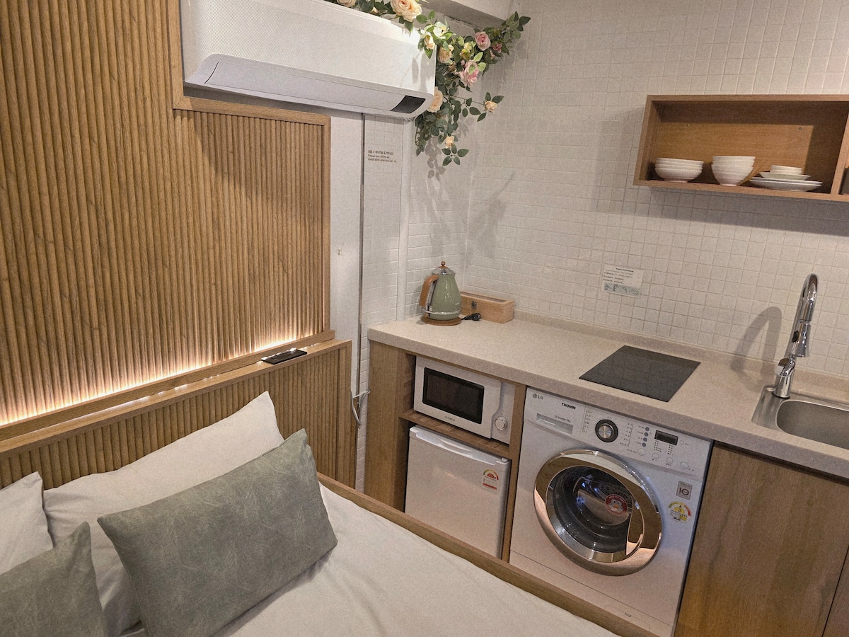Te damos la bienvenida a la casa de Huns, como un hotel, con una vista.Es una habitación agradable y conveniente para hasta 4 personas en estilo loft.Hay todas las instalaciones dentro sin ningún inconveniente, así que no dudes en utilizarlas en cualquier momento. - 1 cama tamaño queen: TV de alta definición completa de 32 pulgadas, TV por cable, - Cubo de arroz eléctrico, vajilla, utensilios de cocina - lavadora de tambor, detergente para ropa, suavizante de telas - Jabón, pasta de dientes, champú, gel de baño, toallas, secadora. - Aire acondicionado y caldera Ondol - Internet inalámbrico wifi