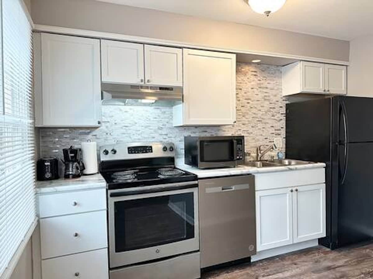 Disfruta de lujo y comodidad en este acogedor estudio frente al lago con entrada privada, adosado a una casa donde residen los amables anfitriones. El estudio ofrece una lujosa cama tamaño queen, una cocina pequeña con mininevera, microondas, placa de inducción y un baño completo. Situado en uno de los barrios más seguros de Naperville, a pocos minutos de cafeterías, restaurantes, mercados y una ruta para bicicletas, con fácil acceso a la I-88.