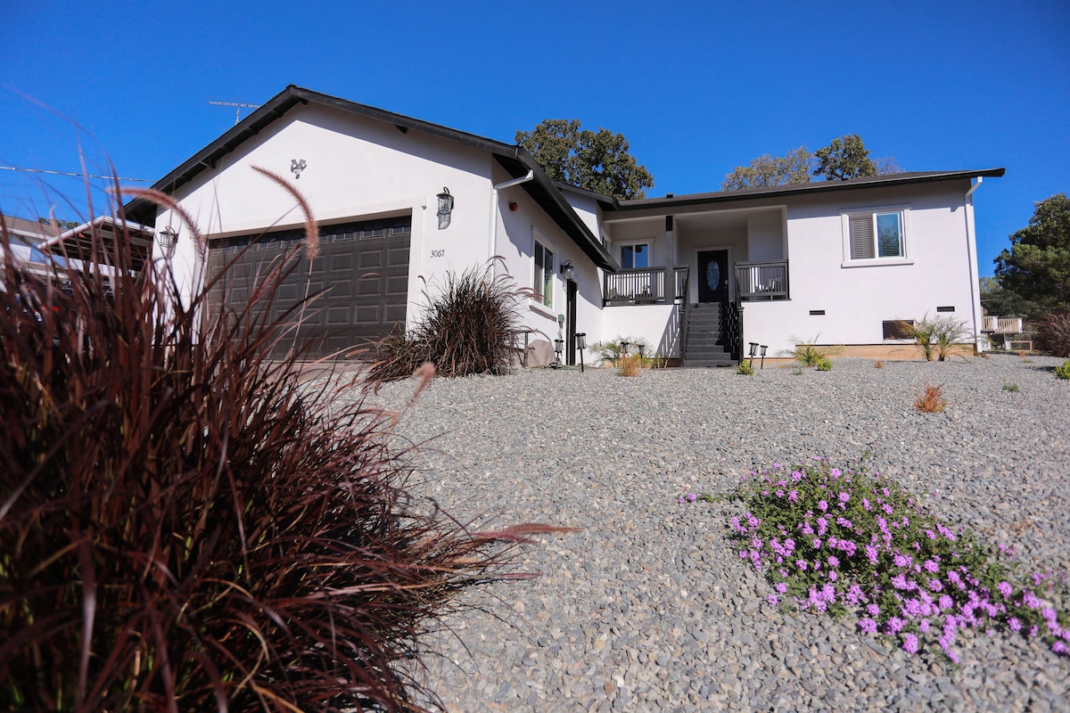 Looking for a luxury getaway in the heart of Northern California? Then youāve come to the right place. We welcome you to our spacious and modern 3 bed, 2 bath home, nestled in the Sierra Nevada foothills. This home features an expansive redwood deck and gazebo, EV charger, multiple fire pits and a large tiled patio, a fully equipped CrossFit-style gym, a large barbecue island, a work from home setup, a large kitchen, an organic vegetable garden and orchard, and all the amenities you need.