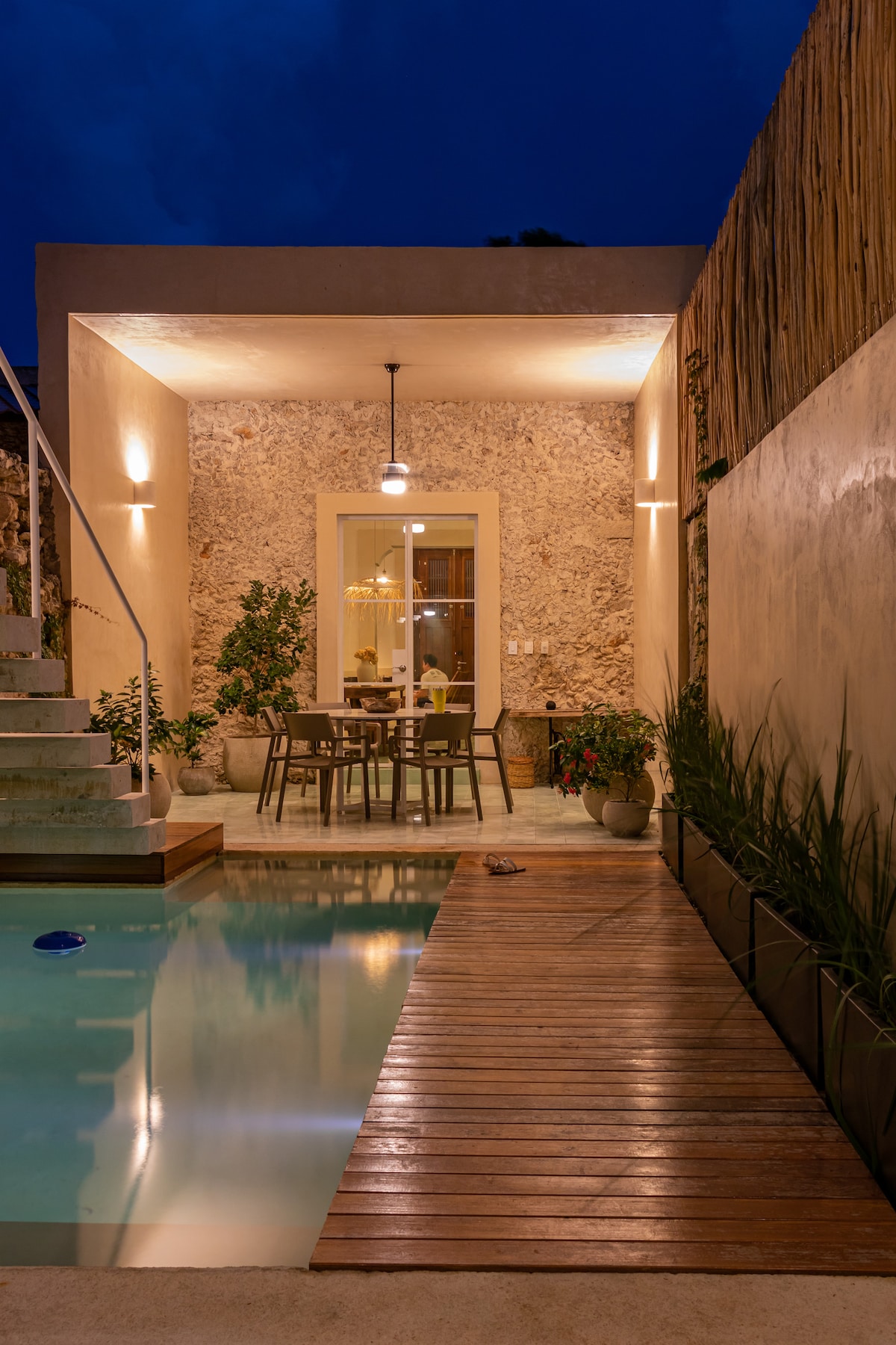 Hermosa casa restaurada a pasos del corredor gastronómico y del Parque de la Plancha. Ideal para relajarse en el corazón del Centro Histórico, rodeado de los mejores restaurantes, bares, tiendas y espacios culturales. A solo dos cuadras de Paseo de Montejo, Casa Jade combina arquitectura, confort y estilo. Disfruta de su lujosa piscina, hamaca y áreas perfectas para relajarte. Cuenta con WiFi, Alexa y TV para una estancia cómoda y moderna.