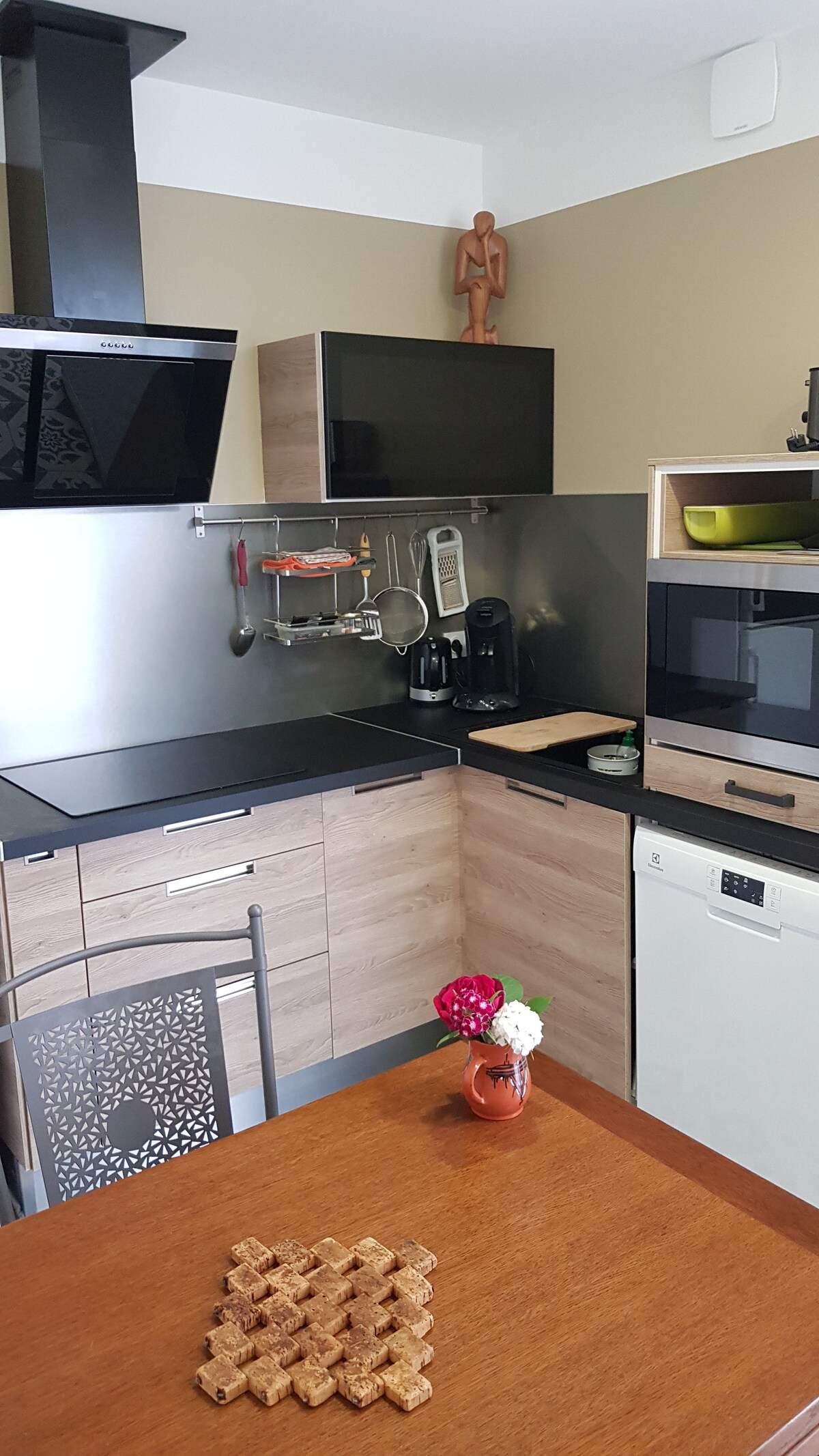 Apartamento con instalaciones modernas en una decoración antigua con su pequeña terraza y su plaza de aparcamiento. Es pequeño pero funcional con ropa de cama de primera. Este apartamento es adosado a nuestra casa, lo que puede causar ruido por la mañana debido a nuestros 3 hijos. Afortunadamente, no todos los días, pero son niños, así que pueden pasar🤷♀️. El exterior no está completamente cerrado para los animales fugitivos, no es ideal. Buena estadía con nosotros 😊