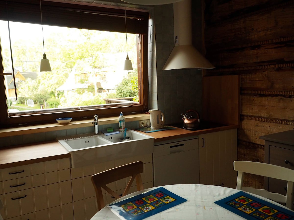 El departamento se encuentra en el centro de la ciudad (a 5 minutos a pie de Krupówki, la principal calle peatonal de la ciudad), pero se encuentra en una calle tranquila y aislada. La casa fue construida a finales de los años treinta del siglo XX, pero el apartamento ha sido recientemente renovado. Es cómodo y cálido, con un ligero ambiente retro que resulta de los detalles del diseño y la presentación dentro de las paredes de madera originales. Perfecto para parejas que estén buscando total comodidad en un lugar acogedor, o una familia con un niño, posiblemente dos.
