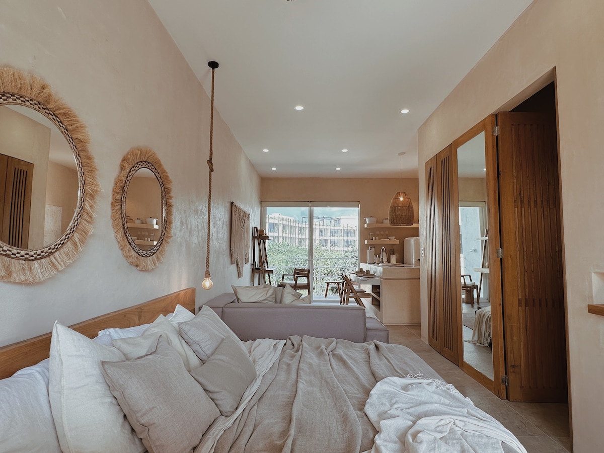 Ubicado en el mejor barrio de Tulum, La Veleta, nuestro alojamiento está a poca distancia a pie de restaurantes, bares, cafeterías, a 5 minutos del centro de la ciudad, a 10 minutos de la playa, a 30 minutos del aeropuerto de Tulum, wifi de alta velocidad, Muunek, un nuevo apartamento bellamente decorado. Disfruta de la piscina privada, ducha al aire libre, piscina de agua salada climatizada, chimenea y zona de yoga dentro del complejo de apartamentos. Nuestro espacio está diseñado para la comodidad y la conveniencia, con una decoración cuidadosamente seleccionada. Nos aseguraremos de que disfrutes de la mejor experiencia.