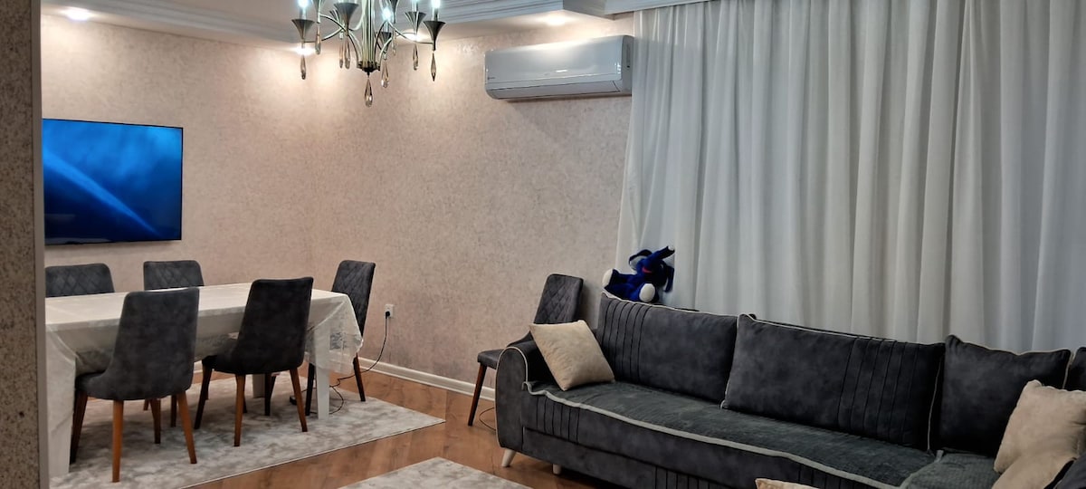 Cozy mountain house in Car village with 3 bedrooms, 2 living rooms, and a glass kitchen opening to nature. Enjoy full comfort: gas, water, Wi-Fi, TV, AC, washing machine, BBQ & samovar. Located just 300m from the riverside Dashliq Restaurant & family zone. A perfect escape for peace, nature, and relaxation. ID documents required at check-in.