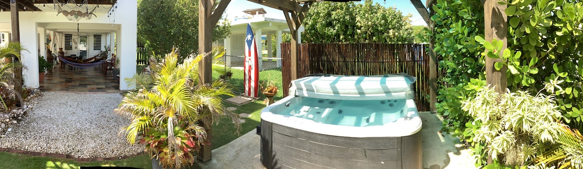 Alojamiento unico y familiar. Fresco, acogedor y tranquilo. Cuenta jacuzzi,hamacas, butacas, comedor, barbacoa, lavadora y secadora. Habitación con cabida para 5 personas, una cama queen, una litera doble, cómodo sofa cama y cocina equipada. Con vista al mar a solo un minuto de la playa. Atracciones turísticas cercanas tales como: Bosque Lluvioso El Yunque, Balneario de Luquillo, montar a caballo, Bahia Biolumiscente y buenos lugares de comida entre otros. Te esperamos pronto!