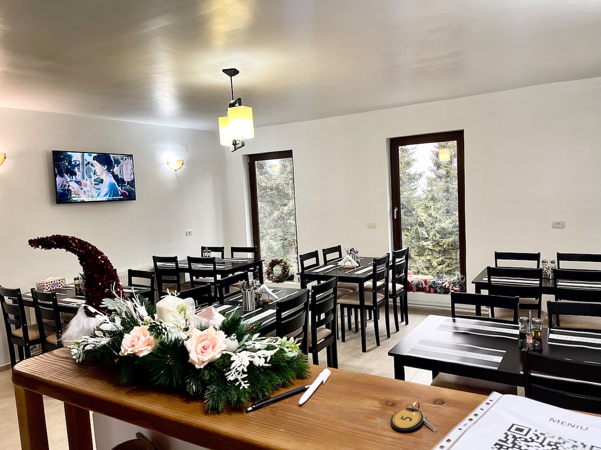 Ubicada en el pintoresco pueblo de Borlova, en la encantadora zona de Little Mountain ( Muntele Mic), esta habitación doble ofrece un refugio acogedor y acogedor para los viajeros que buscan experimentar la belleza natural de la región. La habitación cuenta con dos cómodas camas individuales, un baño privado con comodidades modernas y un balcón privado con vistas al impresionante paisaje de montaña. Hay un sofá plegable disponible en cada habitación, para una persona adicional. Esta opción costará 50 RON adicionales, pagaderos en la propiedad.