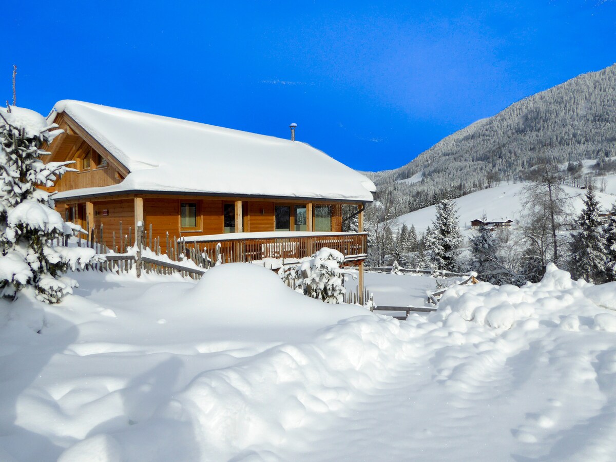Außerordentliches Wohngefühl im ökologischen kanadischen Blockhaus. Naturstämme und Schafwolle - mehr nicht! Schlafen in Zirbenbetten und Schwitzen in der eigenen Zirben-Sauna. Das besondere Highlight ist die private Frischwasser-Whirlwanne auf der Terrasse. Das Chalet liegt direkt neben der Skipiste, Wander- und Mountainbikewegen. Rund ums Chalet gibt es im Sommer und Winter unzählige Möglichkeiten für sportliche, erholsame und aufregende Aktivitäten.