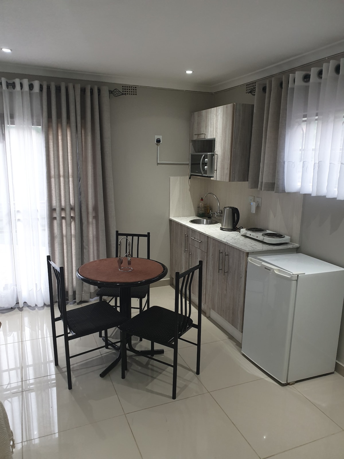 Estudio independiente moderno bellamente decorado con wifi, televisión inteligente, jardín cuidado, pozo, solar, generador de espera SOLO PARA PRIME TIMES, acceso a tenis para todo tipo de clima,cesta, cancha de voleibol y piscina. A 5 km de Sam Levy Village y a 2 km del campo de golf y centro comercial borrowdale Brook.