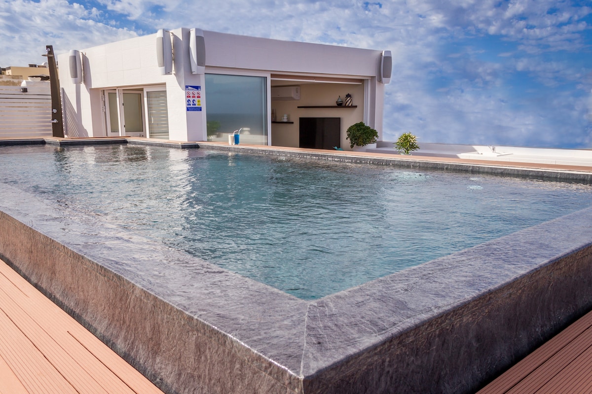 Piscina privada en la azotea y jacuzzi climatizado, vistas al mar