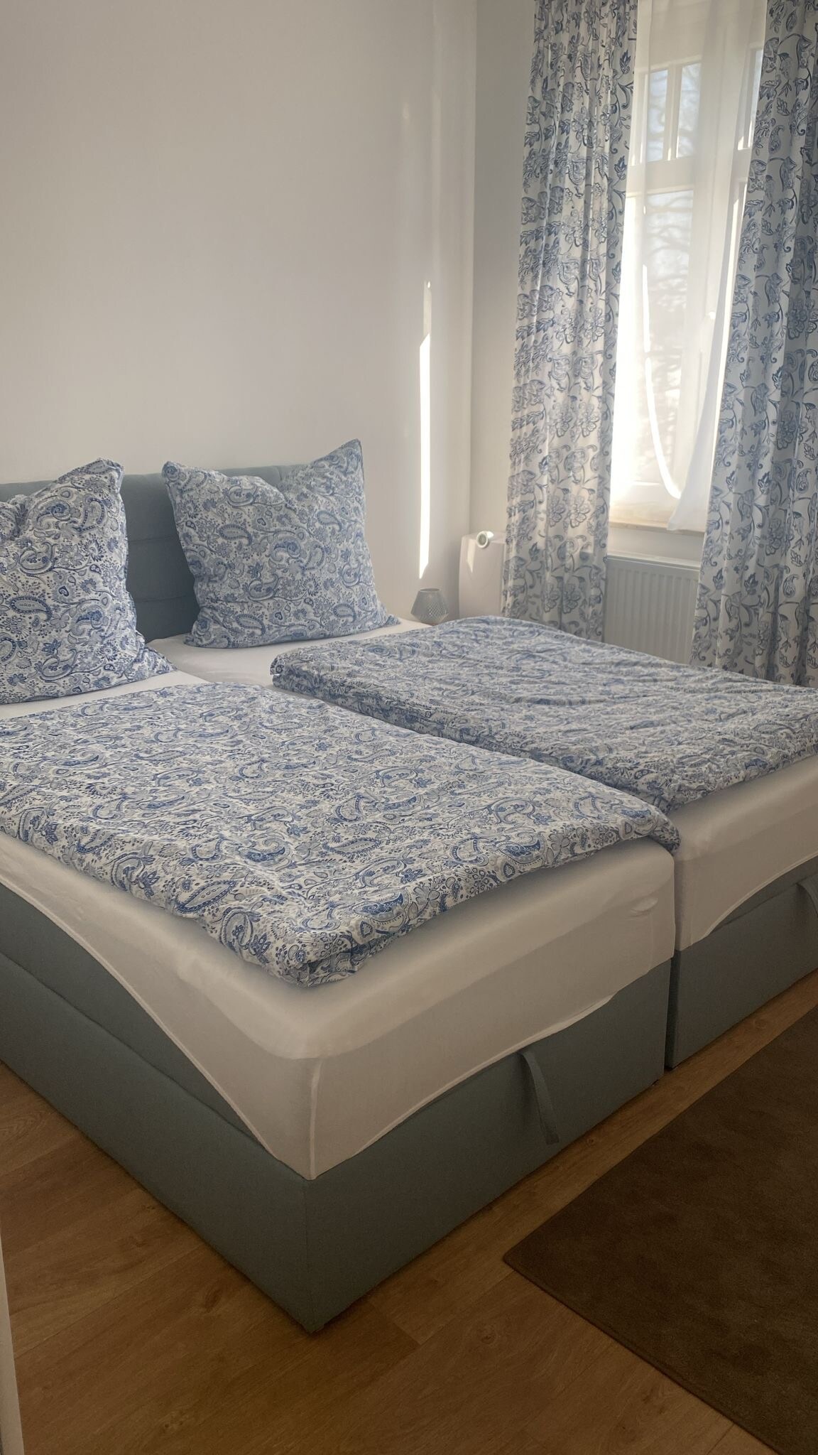 El apartamento en el 2do piso a la izquierda ofrece llegada autónoma y está a menos de 200 metros de dos supermercados. Incluye una cocina totalmente equipada (incl. Refrigerador, horno, estufa, microondas, lavavajillas, hervidor de agua, tostadora, cafetera), baño, dormitorio y sala de estar abierta con sofá cama, TV y mesa de comedor, que también se puede utilizar para trabajar. El ambiente colorido te invita a sentirte bien, se incluye internet rápido.